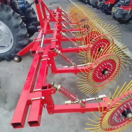 A :이 트랙터 헤이 레이크는 트랙터 플레어 모어와 함께 사용할 수 있습니다. 그것은 후속 번들링 작업에 도움이되는 3 개의 잔디 스와 스를 갈아 입을 수 있습니다.